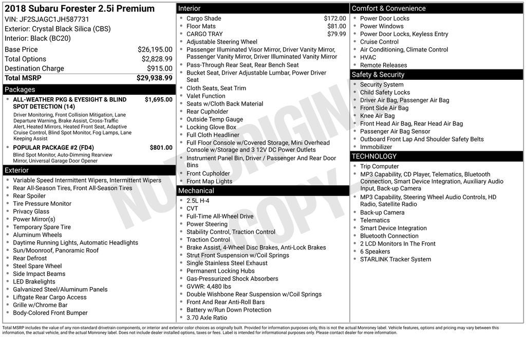 - Vehicle Name: Subaru Forester