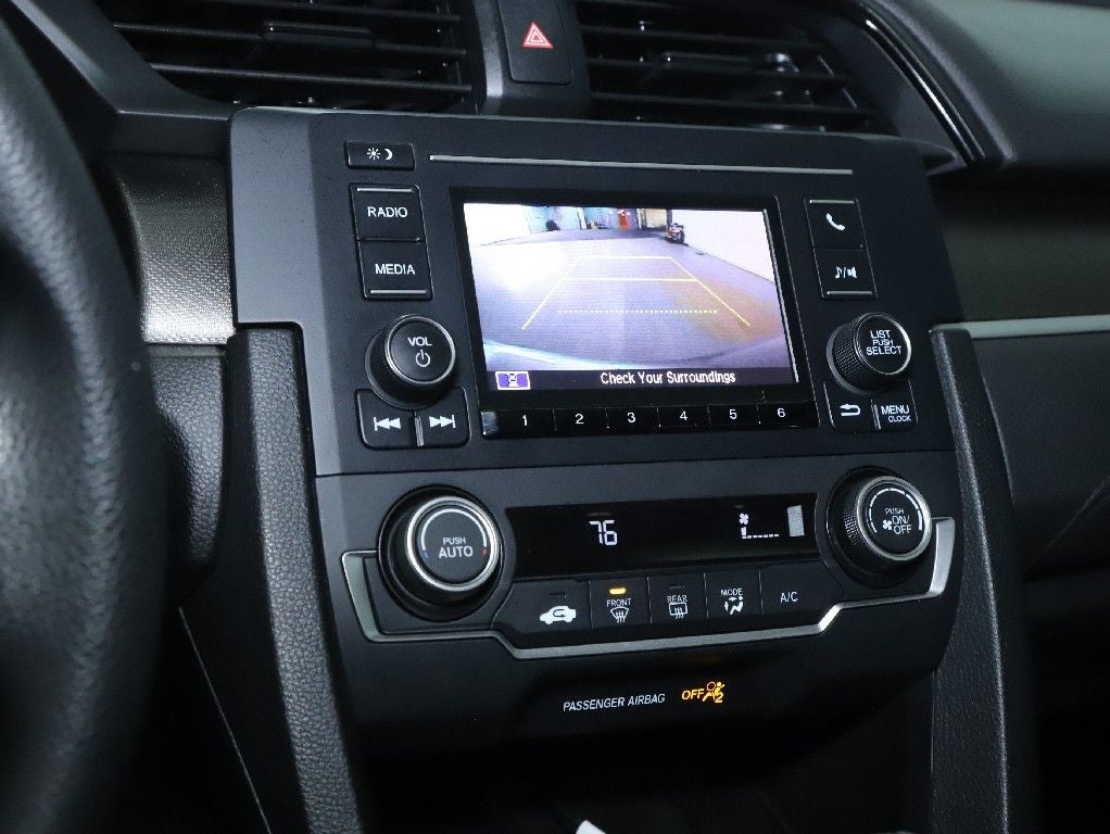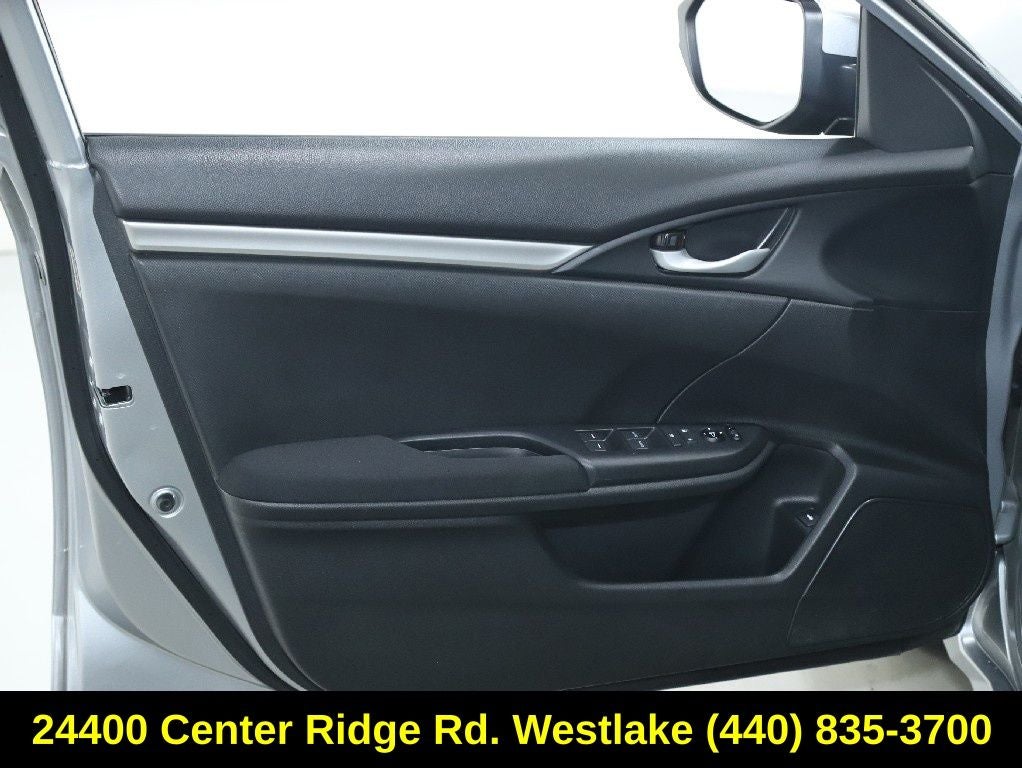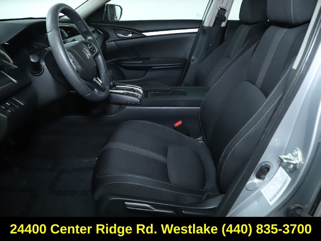 The exterior of this Civic LX exudes a refined and modern aesthetic, with sleek lines and a body-color bumper that complement the 16-inch wheels with full covers. Step inside the well-appointed cabin, where you'll find comfortable cloth seating, a driver's vanity mirror, and an illuminated entry system that welcomes you in style.